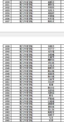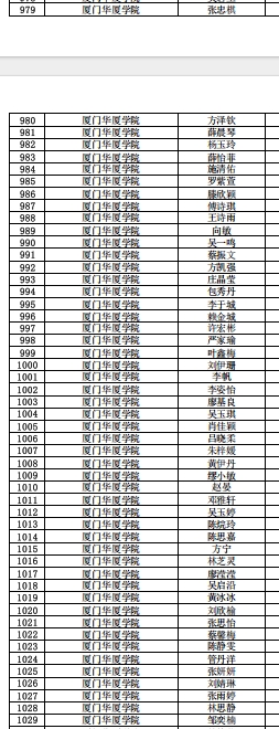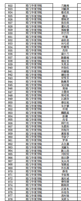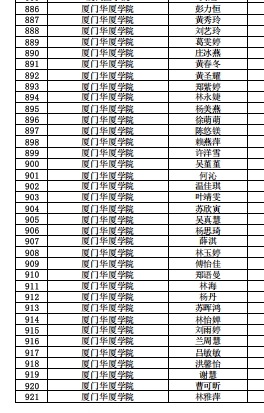 厦门市普通高校国家励志奖学金获奖学生名单汇总表
